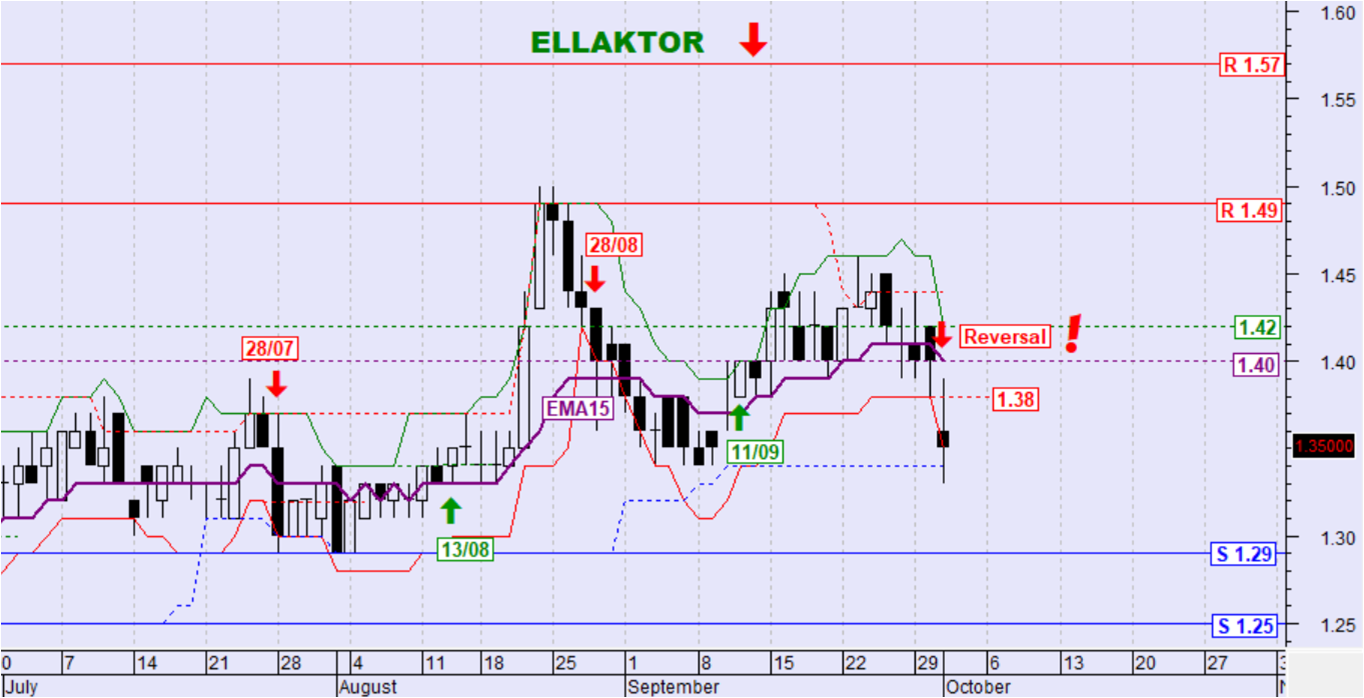Βραχυπρόθεσμη τάση: αντιστράφηκε σε καθοδική με την καθοδική διάσπαση των 1,38€ στο κλείσιμο