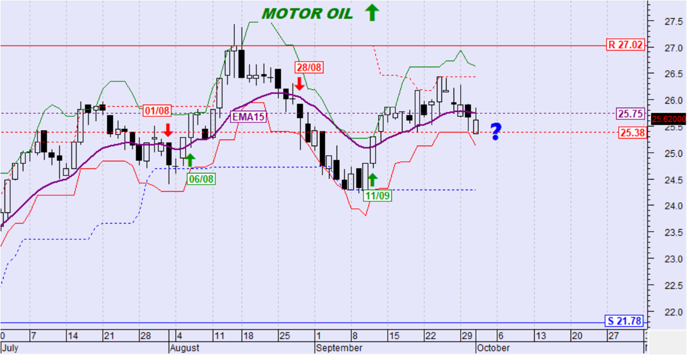 Ημερήσιο όριο αντιστροφής της βραχυπρόθεσμης τάσης σε καθοδική: 25,38€ (κλείσιμο)