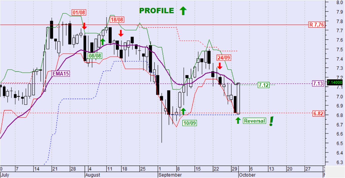 Βραχυπρόθεσμη τάση: αντιστράφηκε σε ανοδική με την υπέρβαση των 7,12€ στο κλείσιμο