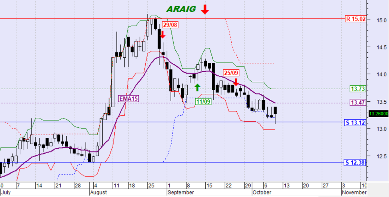 Ημερήσιο όριο αντιστροφής της βραχυπρόθεσμης τάσης σε καθοδική: 12.94€ (κλείσιμο)