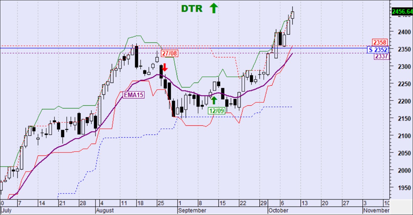 Ημερήσιο όριο αντιστροφής της βραχυπρόθεσμης τάσης σε καθοδική: 2358 μονάδες