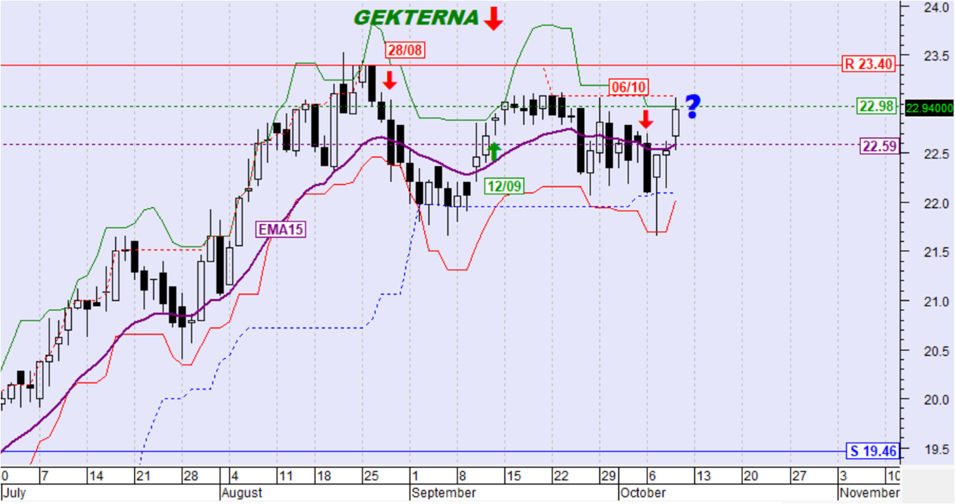 Ημερήσιο όριο αντιστροφής της βραχυπρόθεσμης τάσης σε ανοδική: 22.98€ (κλείσιμο)