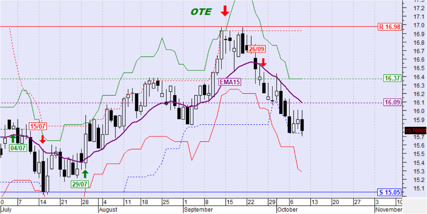 ο Εκθετικός Μέσος Όρος των 15 ημερών (ΕΜΑ15) στα 16,09€
