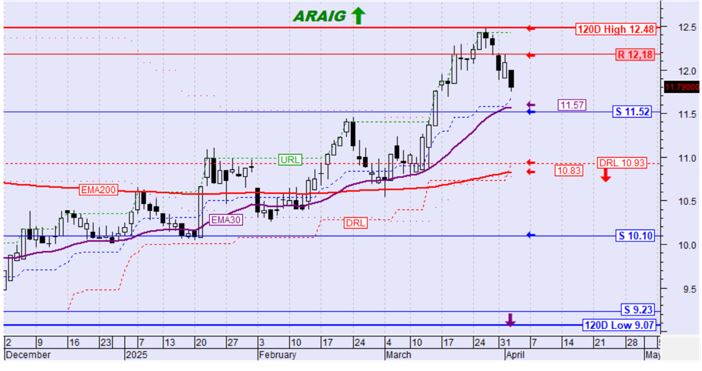 Η μετοχή παρέμεινε αμετάβλητη αλλά επιβεβαίωσε τη διάσπαση του ΕΜΑ30 με αποτέλεσμα την ενεργοποίηση προειδοποίησης για πιθανή αντιστροφή της μεσοπρόθεσμης τάσης σε καθοδική. Διατηρεί την μεσοπρόθεσμη ανοδική τάση.