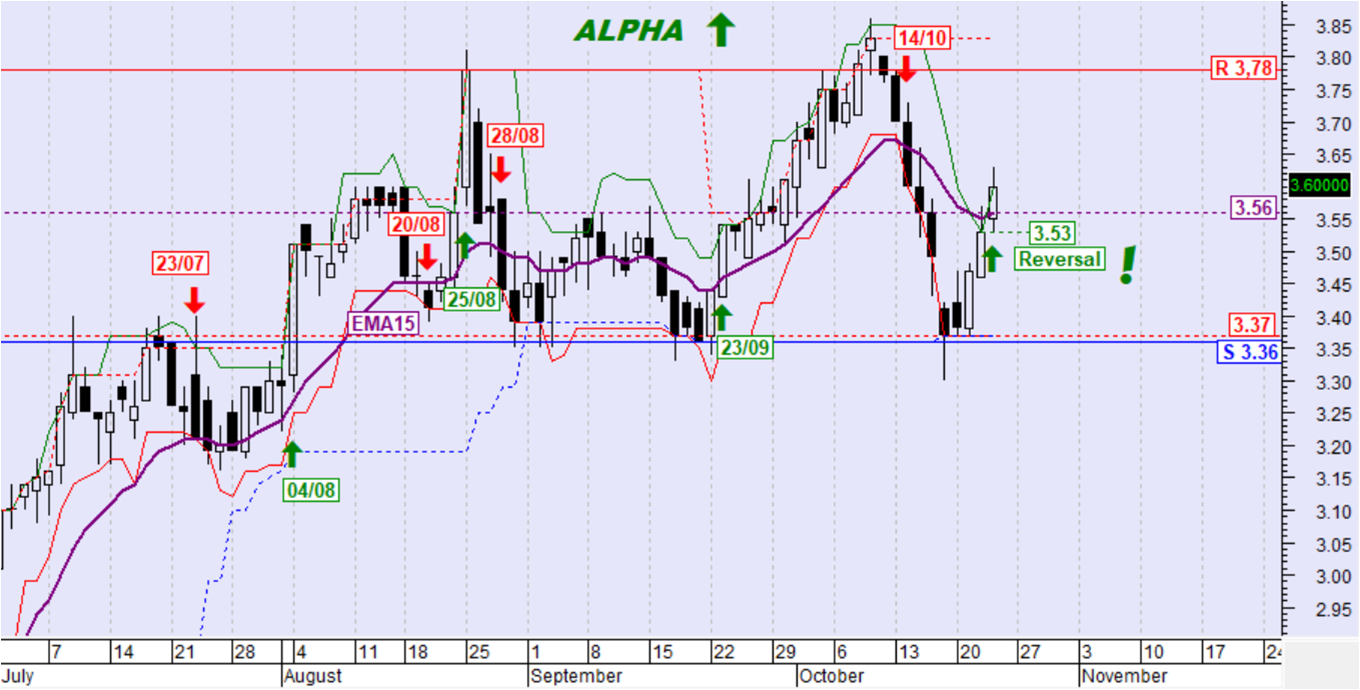 Βραχυπρόθεσμη τάση: αντιστράφηκε σε ανοδική με την υπέρβαση των 3.53€ στο κλείσιμο