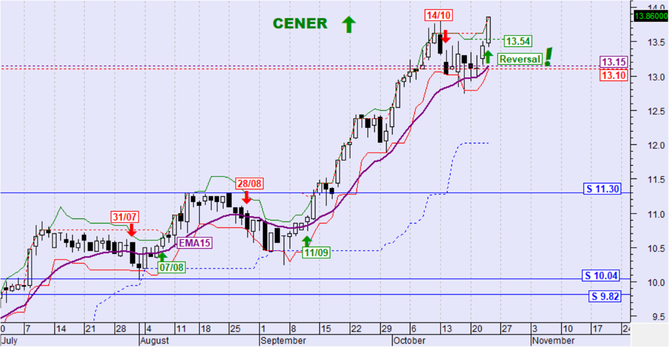 Βραχυπρόθεσμη τάση: αντιστράφηκε σε ανοδική με την υπέρβαση των 13.54€ στο κλείσιμο