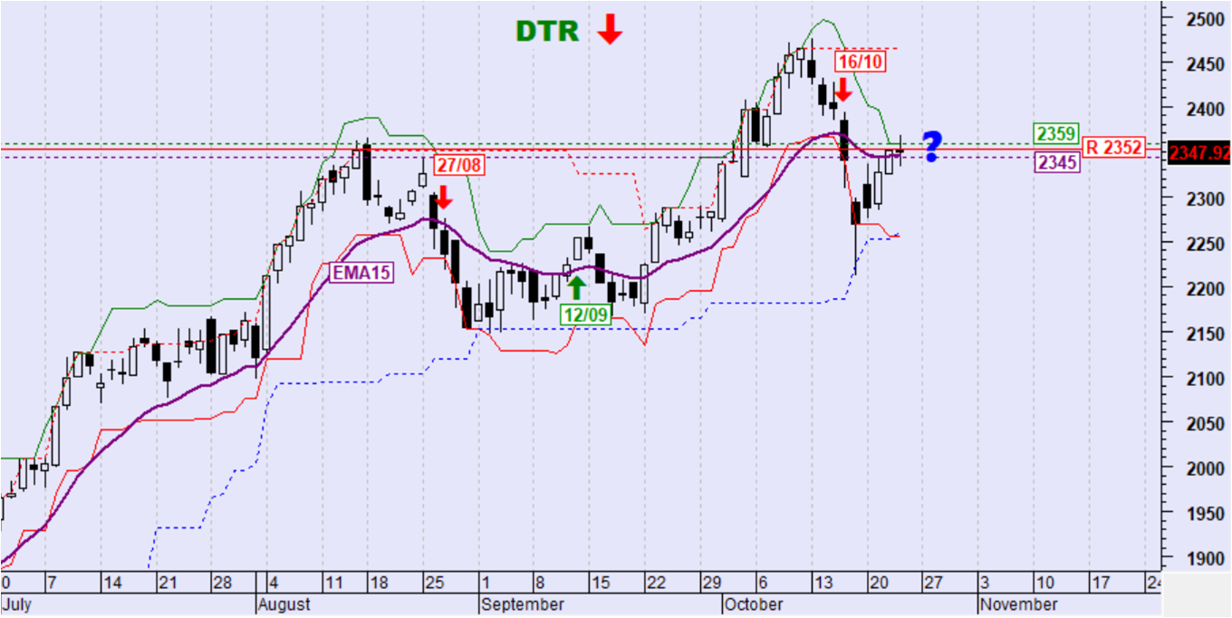 Ημερήσιο όριο αντιστροφής της βραχυπρόθεσμης τάσης σε ανοδική: 2359 μονάδες