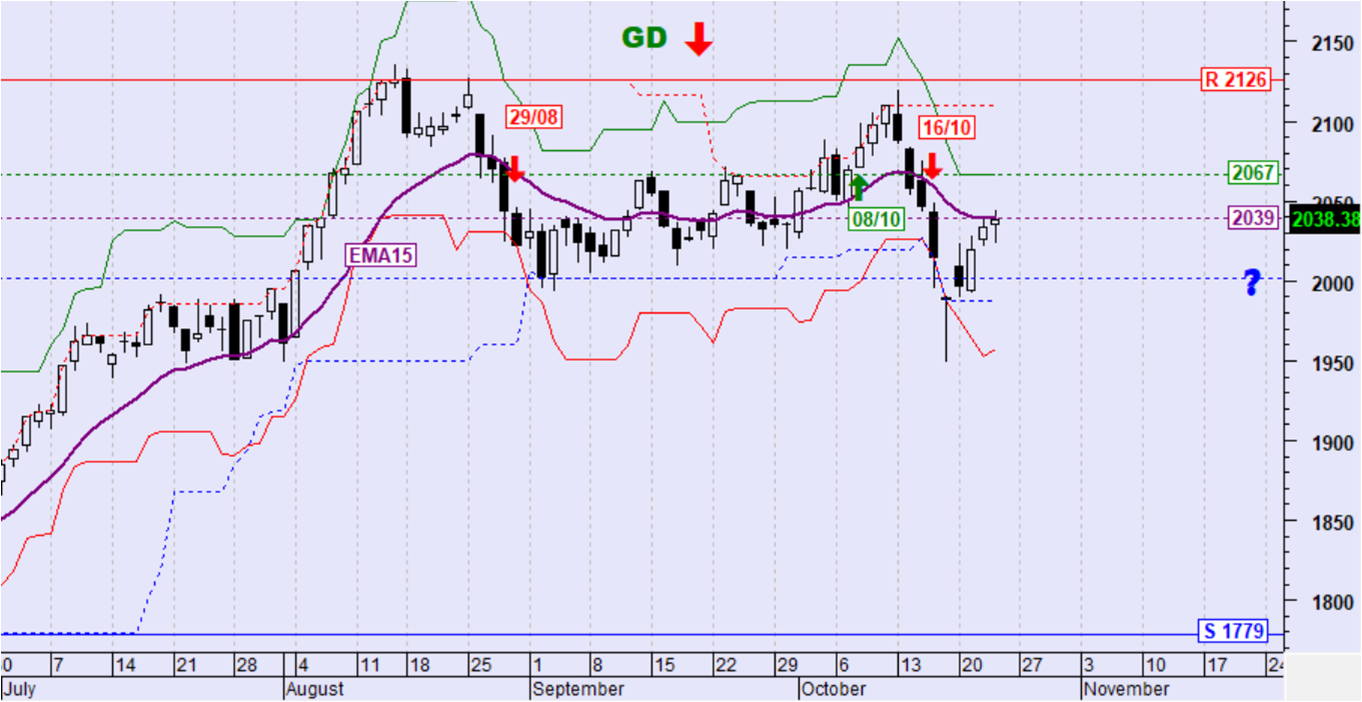 Ημερήσιο όριο αντιστροφής της βραχυπρόθεσμης τάσης σε ανοδική: 2067 μονάδες