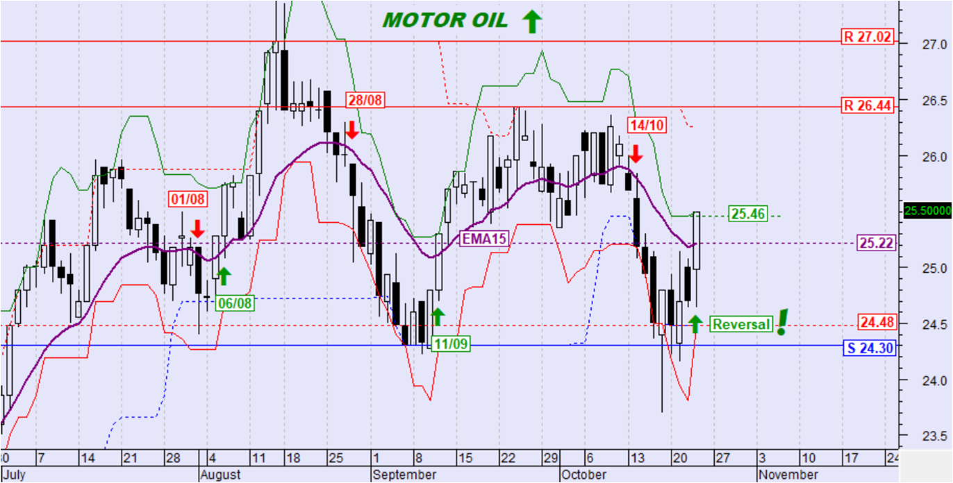 Βραχυπρόθεσμη τάση: αντιστράφηκε σε ανοδική με την υπέρβαση των 25.46€ στο κλείσιμο