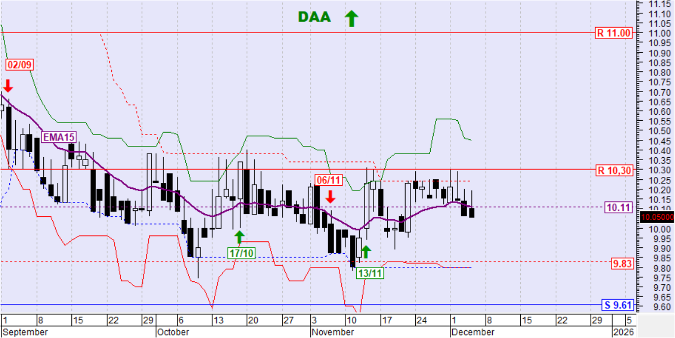 Ημερήσιο όριο αντιστροφής της βραχυπρόθεσμης τάσης σε καθοδική: 9.83€ (κλείσιμο)