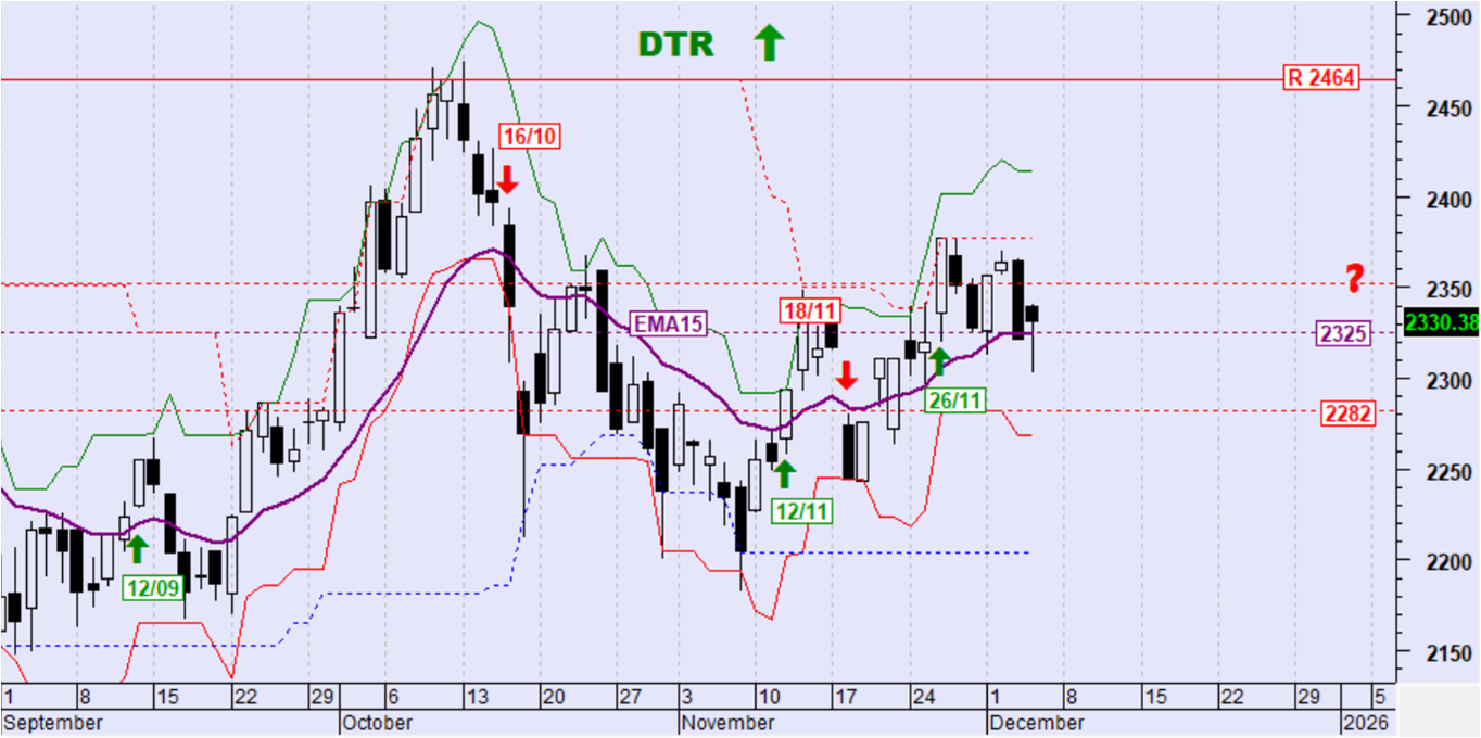 ο Εκθετικός Μέσος Όρος των 15 ημερών (ΕΜΑ15) στις 2325 μονάδες