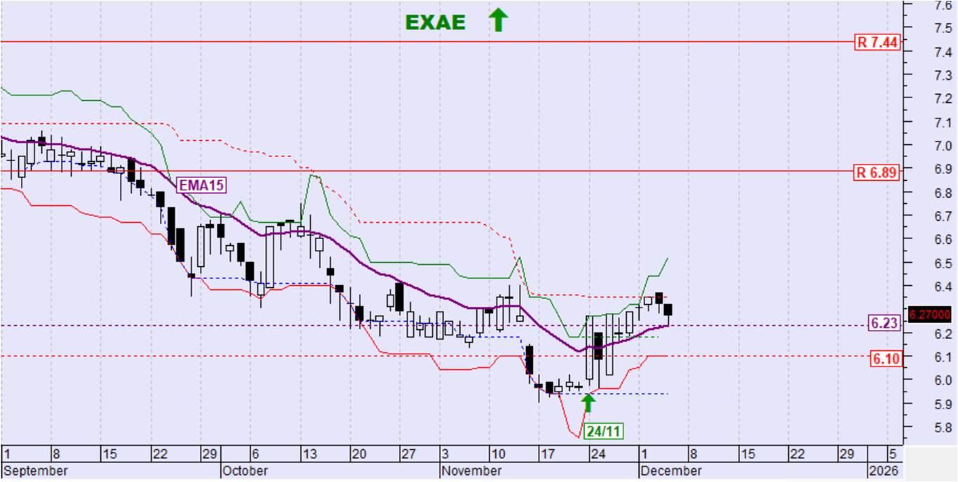 ο Εκθετικός Μέσος Όρος των 15 ημερών (ΕΜΑ15) στα 6,23€