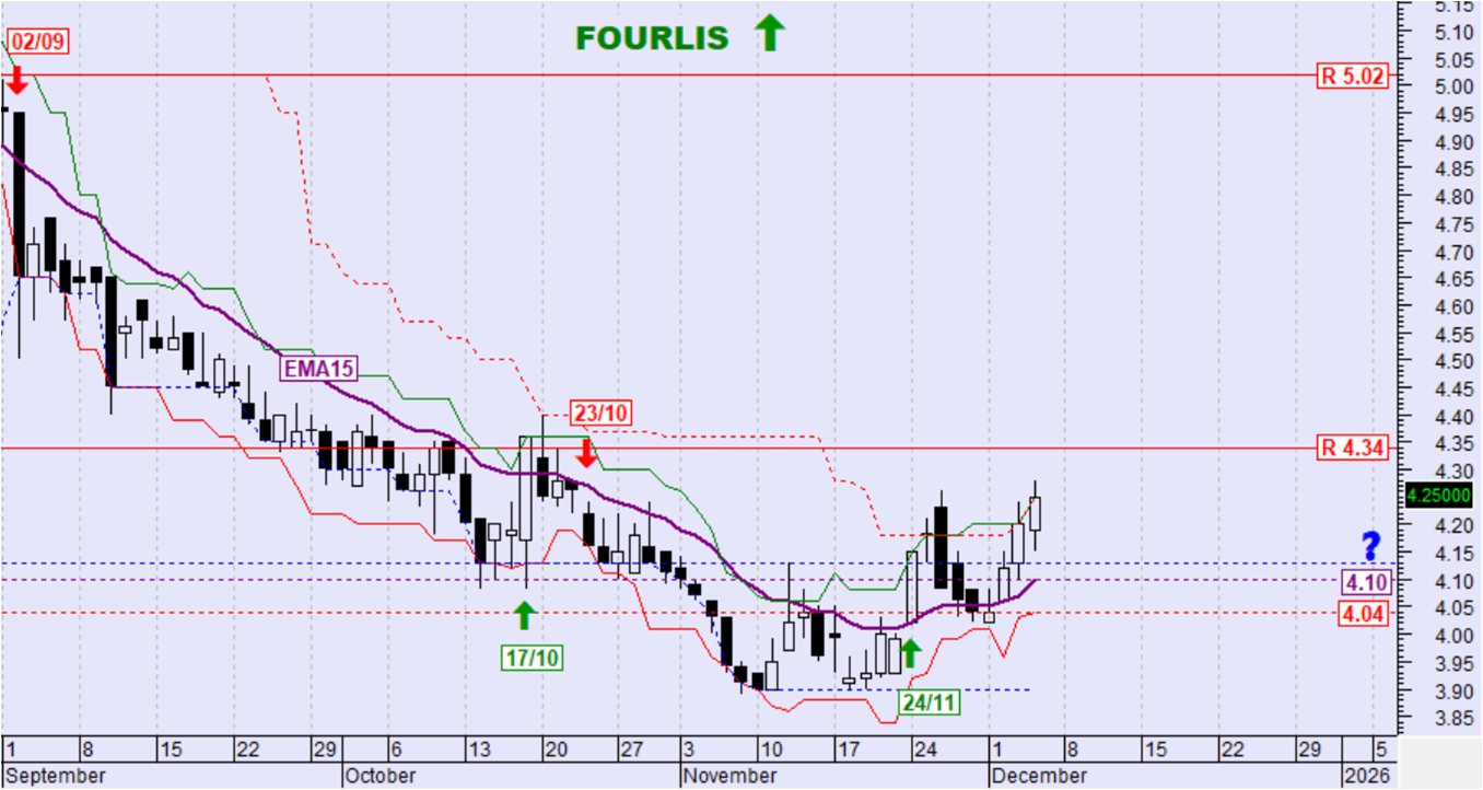Ημερήσιο όριο αντιστροφής της βραχυπρόθεσμης τάσης σε καθοδική: 4,04€ (κλείσιμο)