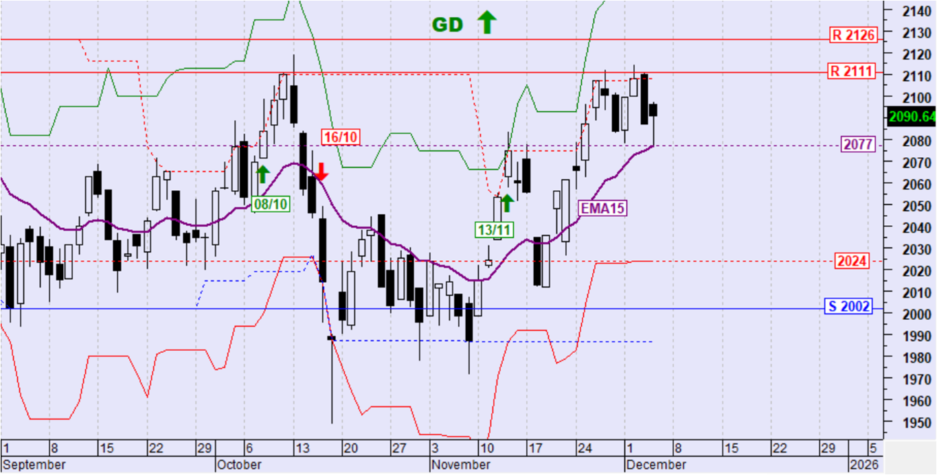 ο Εκθετικός Μέσος Όρος των 15 ημερών (ΕΜΑ15) στις 2077 μονάδες