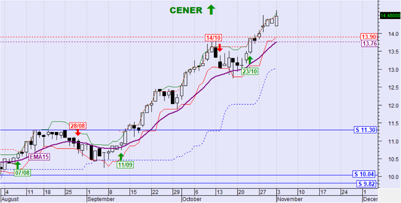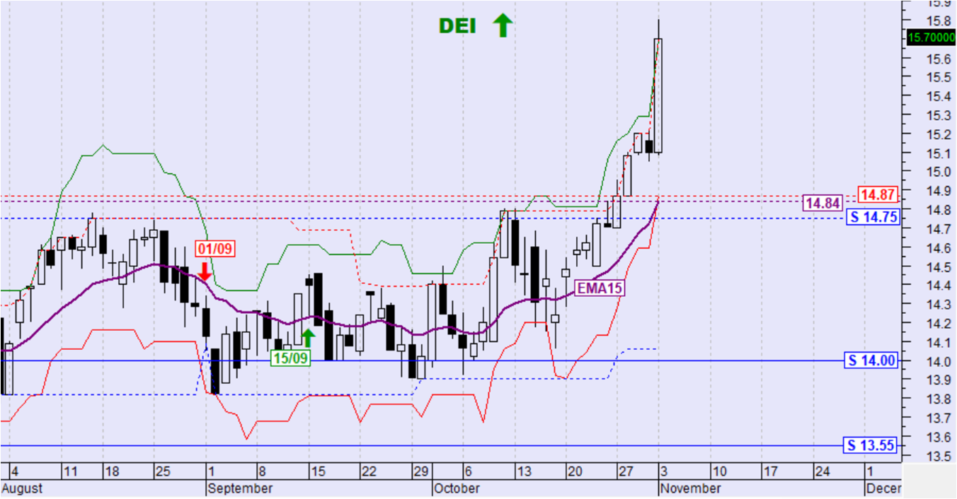 Ημερήσιο όριο αντιστροφής της βραχυπρόθεσμης τάσης σε καθοδική: 13.90€ (κλείσιμο)