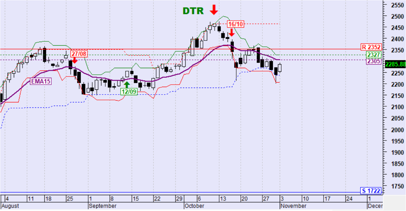 ο Εκθετικός Μέσος Όρος των 15 ημερών (ΕΜΑ15) στις 2305 μονάδες