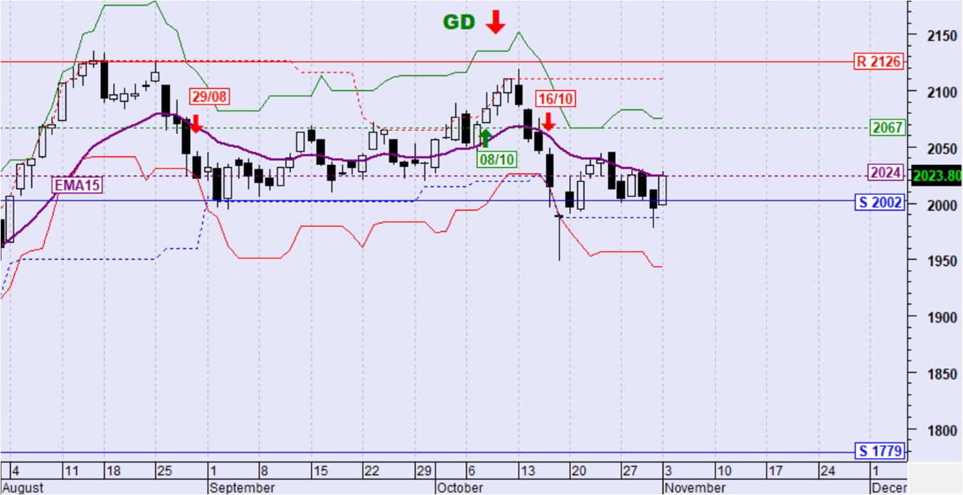ο Εκθετικός Μέσος Όρος των 15 ημερών (ΕΜΑ15) στις 2024 μονάδες