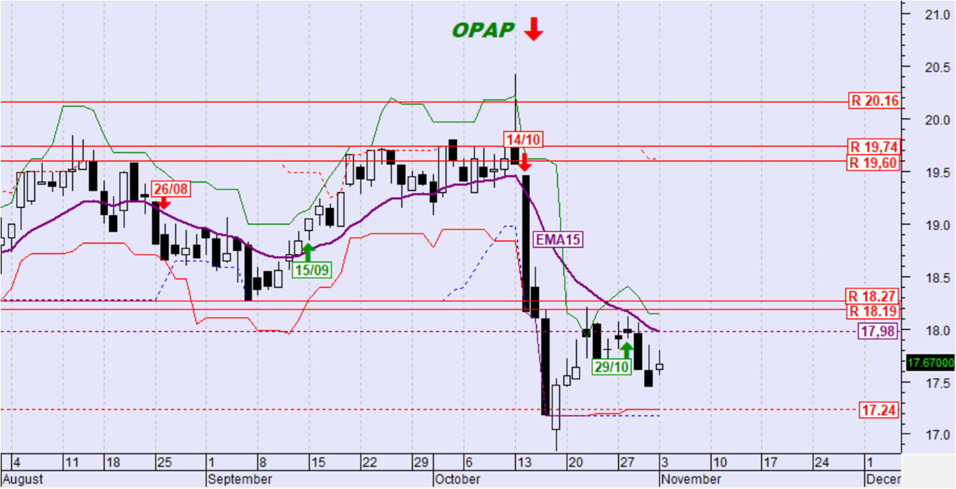 Βραχυπρόθεσμη τάση: αντιστράφηκε σε ανοδική με την υπέρβαση των 18.42€ στο κλείσιμο