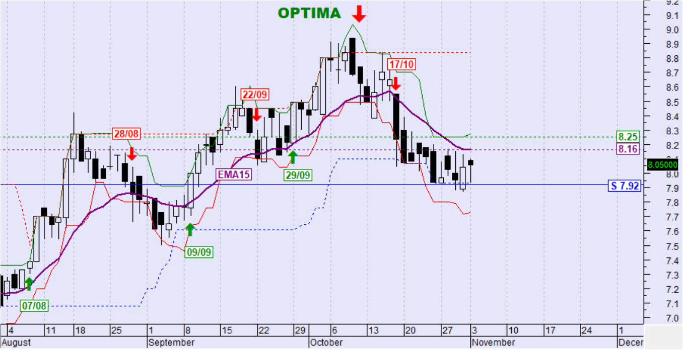 Ημερήσιο όριο αντιστροφής της βραχυπρόθεσμης τάσης σε ανοδική: 8,25€ (κλείσιμο)