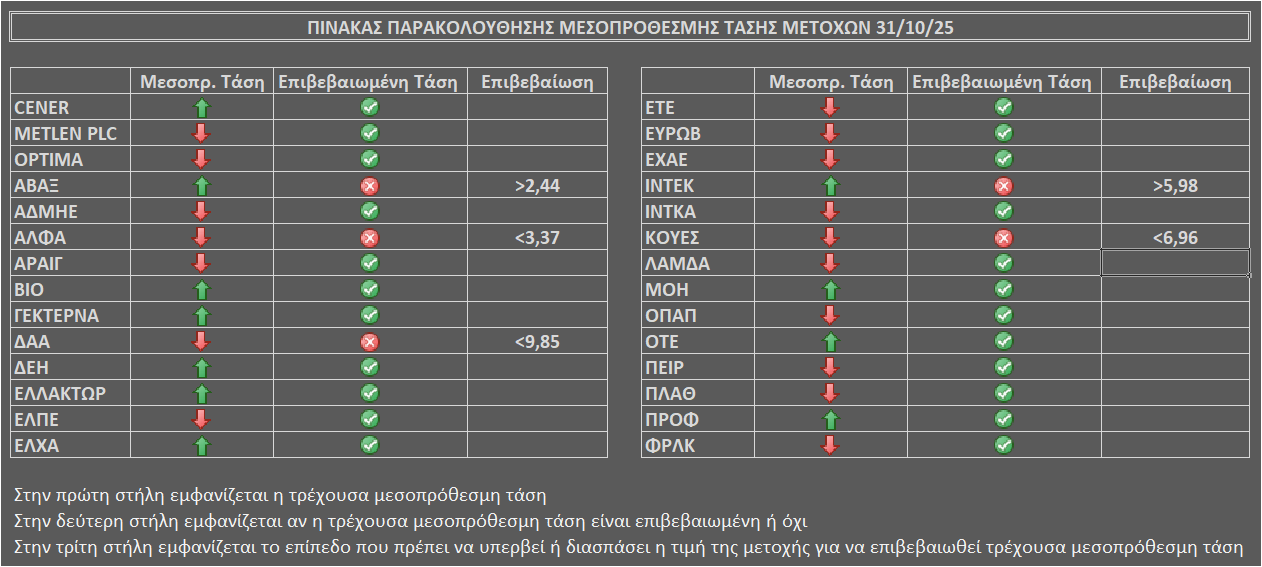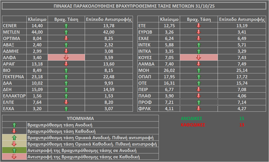 Σχόλιο τεχνικής ανάλυσης δεικτών – μετοχών με το κλείσιμο της 31-10-25