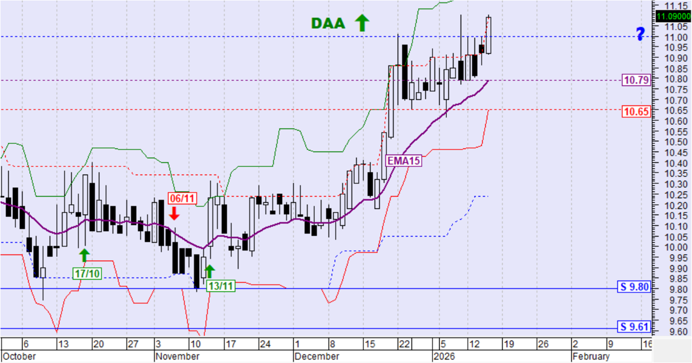 Ημερήσιο όριο αντιστροφής της βραχυπρόθεσμης τάσης σε καθοδική: 10.65€ (κλείσιμο)