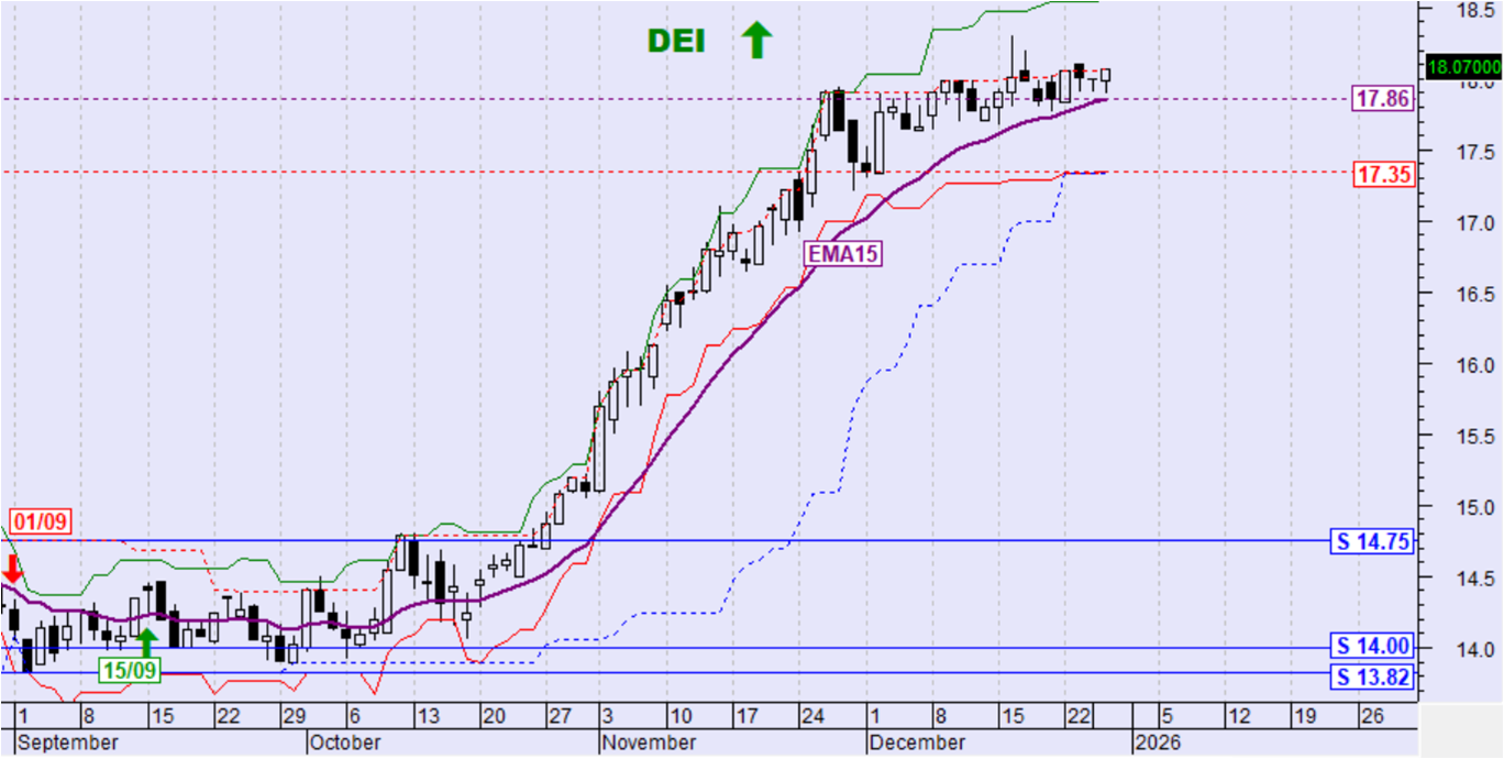 Ημερήσιο όριο αντιστροφής της βραχυπρόθεσμης τάσης σε ανοδική: 17.39€ (κλείσιμο)