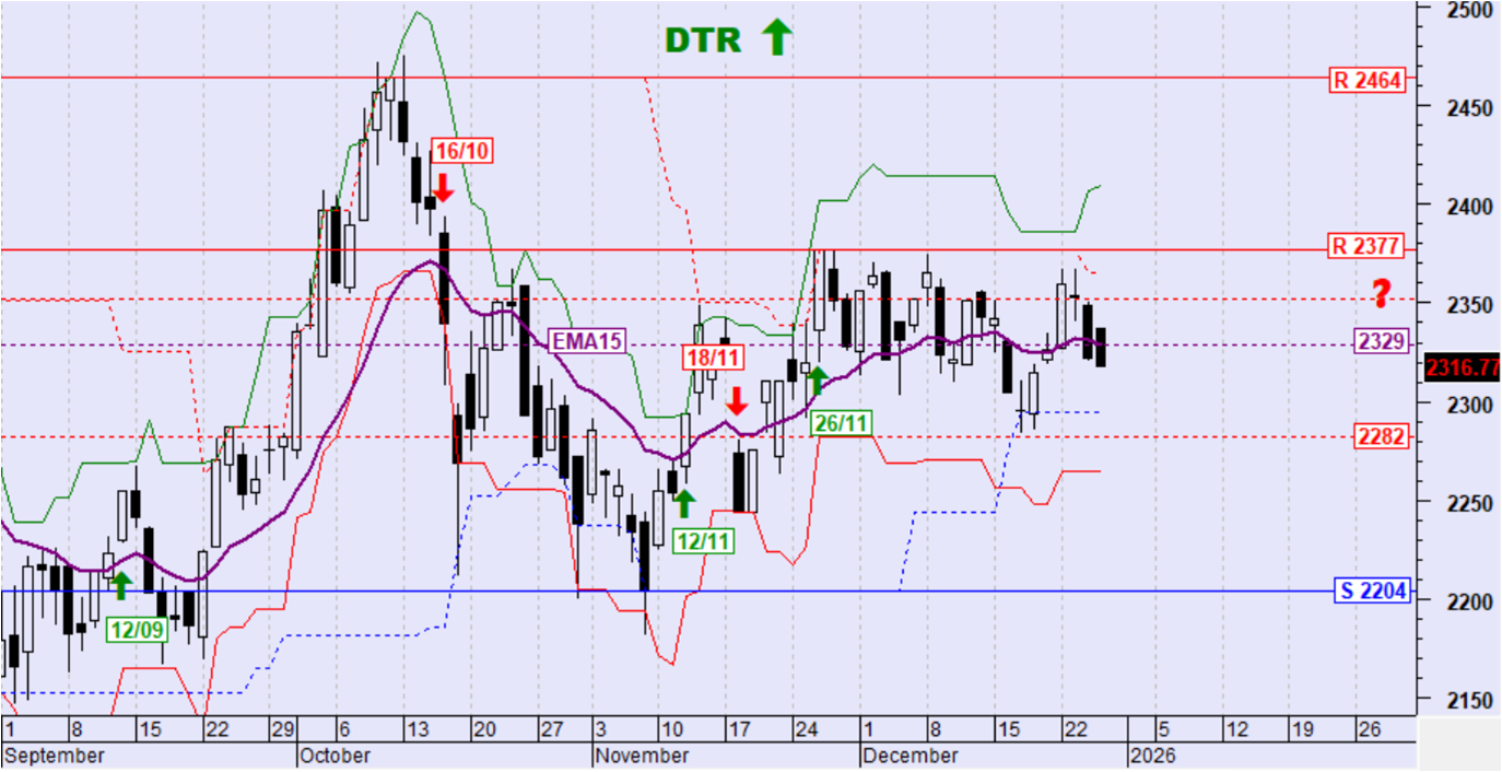 Ημερήσιο όριο αντιστροφής της βραχυπρόθεσμης τάσης σε καθοδική: 2282 μονάδες