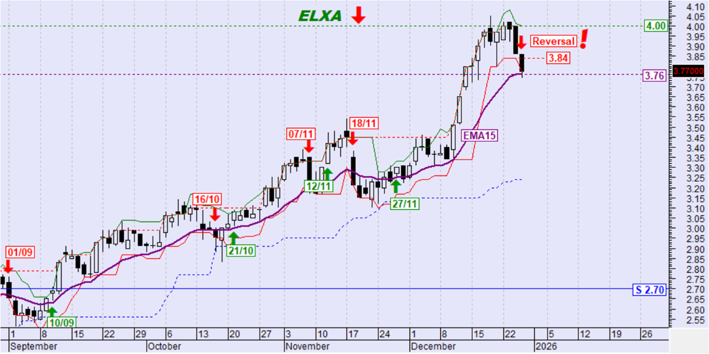 Βραχυπρόθεσμη τάση: αντιστράφηκε σε καθοδική με την καθοδική διάσπαση των 3,84€ στο κλείσιμο