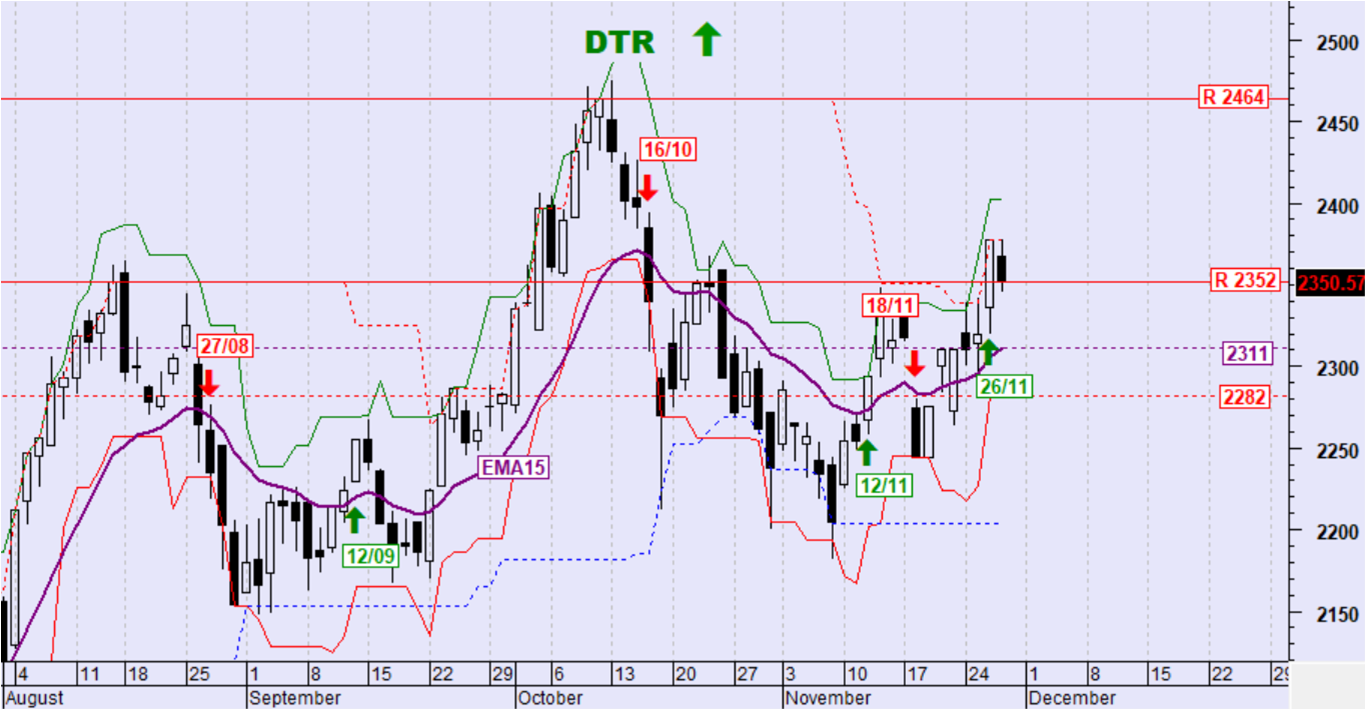 ο Εκθετικός Μέσος Όρος των 15 ημερών (ΕΜΑ15) στις 2311 μονάδες