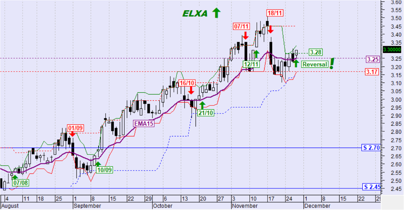 Βραχυπρόθεσμη τάση: αντιστράφηκε σε ανοδική με την υπέρβαση των 3.28€ στο κλείσιμο