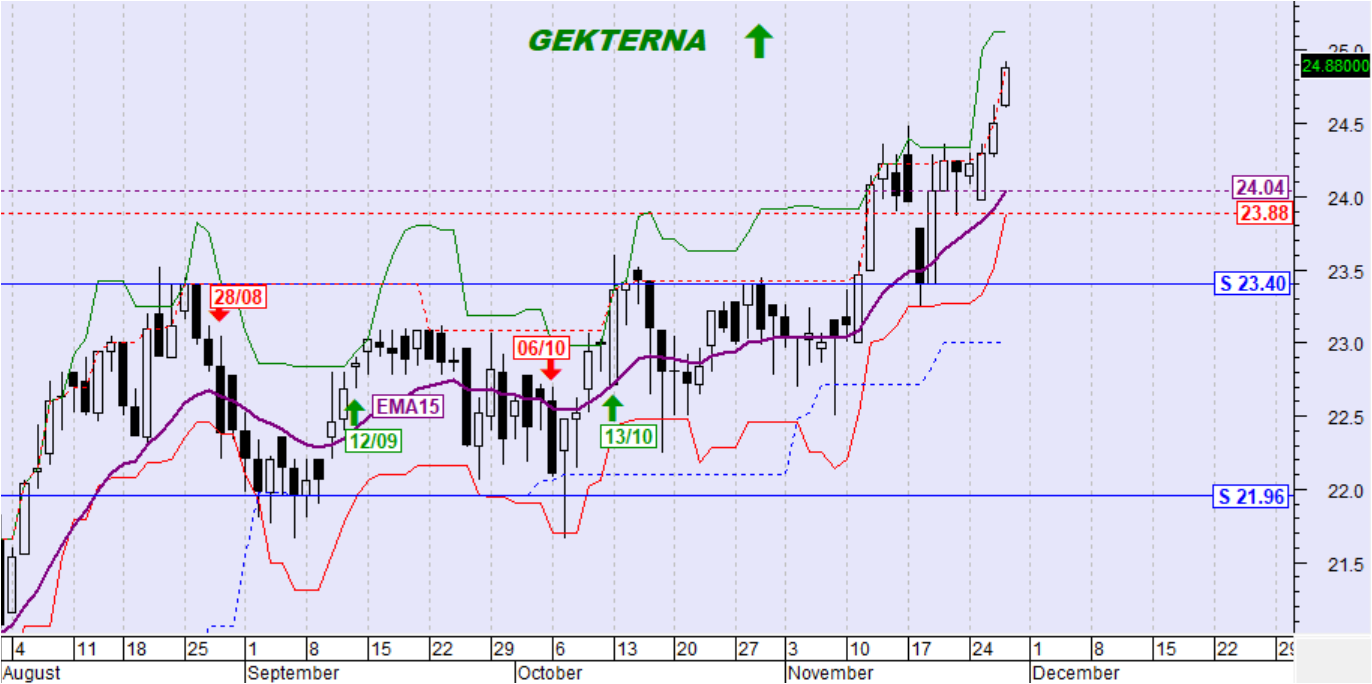 Ημερήσιο όριο αντιστροφής της βραχυπρόθεσμης τάσης σε καθοδική: 23.88€ (κλείσιμο)