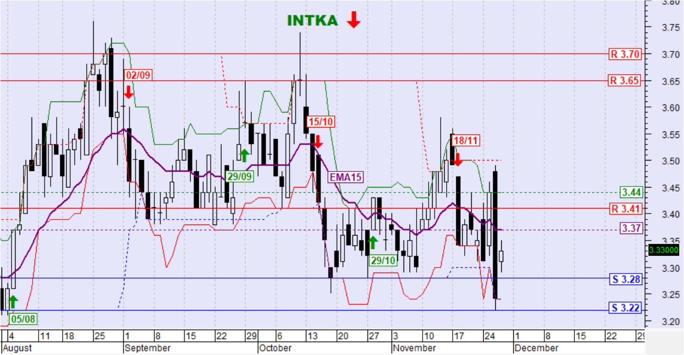 Ημερήσιο όριο αντιστροφής της βραχυπρόθεσμης τάσης σε ανοδική: 3,44€ (κλείσιμο)
