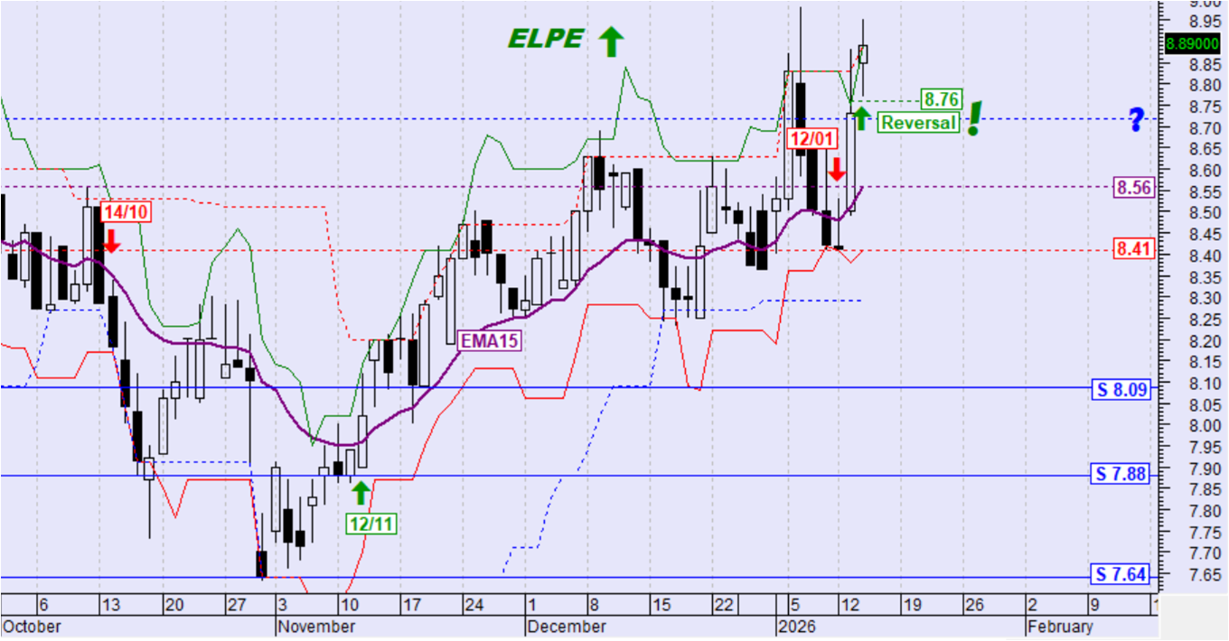 Βραχυπρόθεσμη τάση: αντιστράφηκε σε ανοδική με την υπέρβαση των 8.76€ στο κλείσιμο