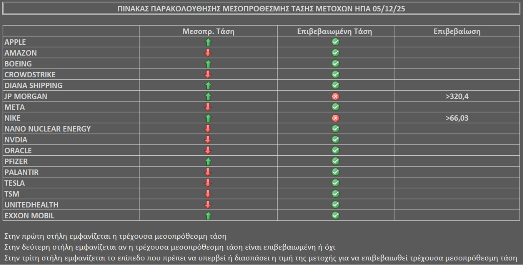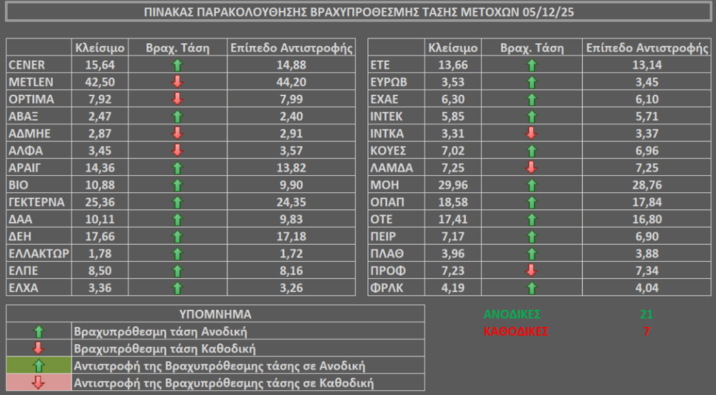 Σχόλιο τεχνικής ανάλυσης δεικτών – μετοχών με το κλείσιμο της 05-12-25