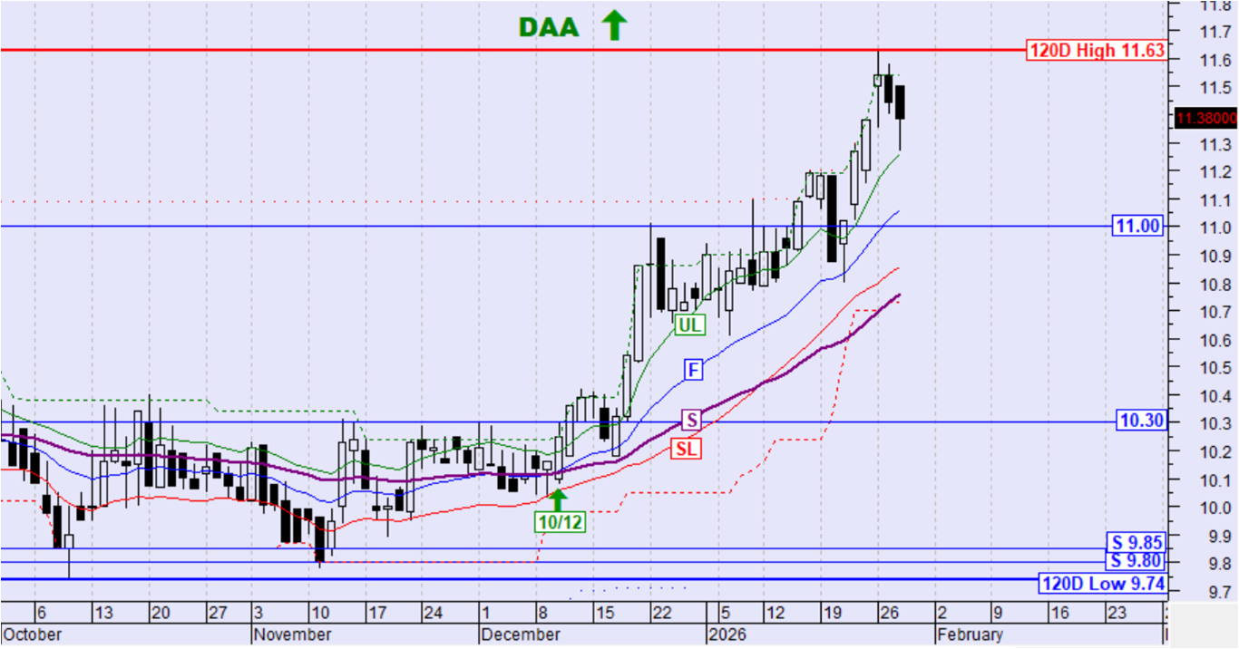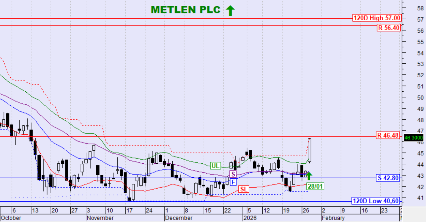 Η μετοχή κινήθηκε ανοδικά και πέτυχε ξανά νέο υψηλό 120 ημερών. Η τιμή παραμένει ψηλότερα της SL και του αργού κινητού μέσου όρου S έτσι διατηρείται η ανοδική τάση.