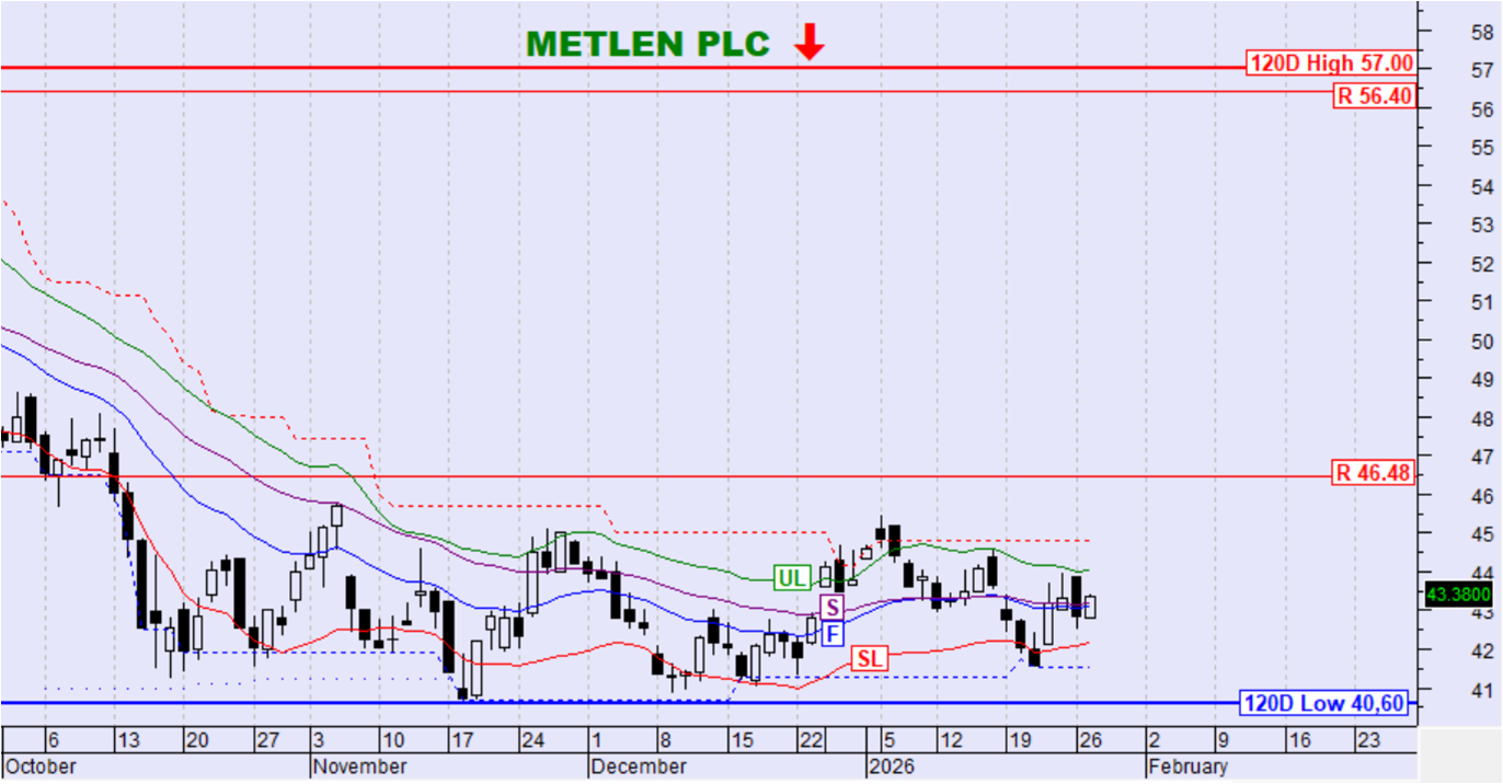 Η μετοχή κινήθηκε ανοδικά αλλά παραμένει χαμηλότερα της UL με αποτέλεσμα τη διατήρηση της καθοδικής τάσης.