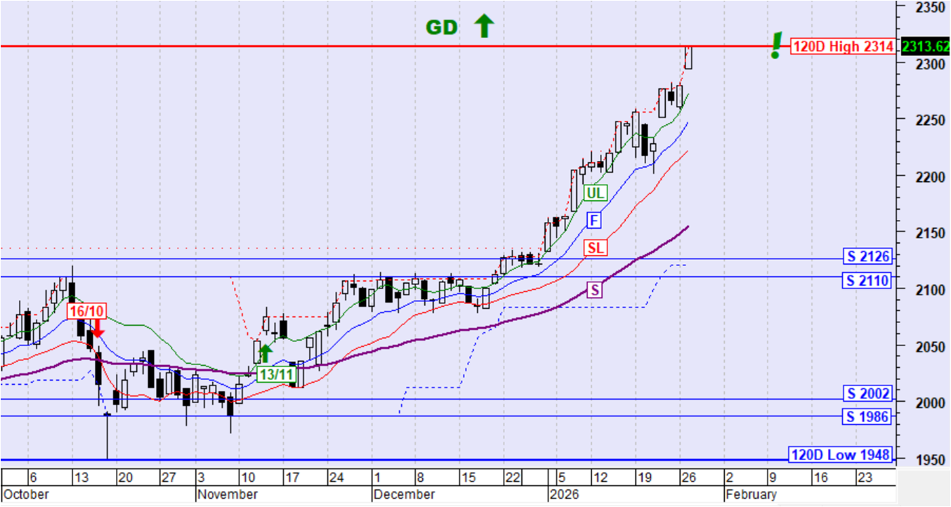 Ο ΓΔ κινήθηκε ανοδικά και πέτυχε ξανά νέο υψηλό 120 ημερών. Η τιμή παραμένει ψηλότερα της SL και του αργού κινητού μέσου όρου S έτσι διατηρείται η ανοδική τάση.