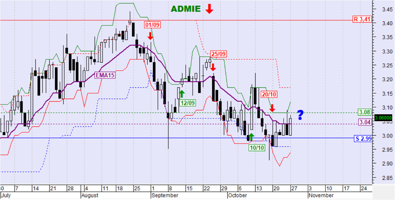 ο Εκθετικός Μέσος Όρος των 15 ημερών (ΕΜΑ15) στα 3,04€