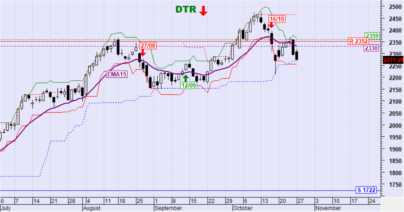 Ημερήσιο όριο αντιστροφής της βραχυπρόθεσμης τάσης σε ανοδική: 2359 μονάδες