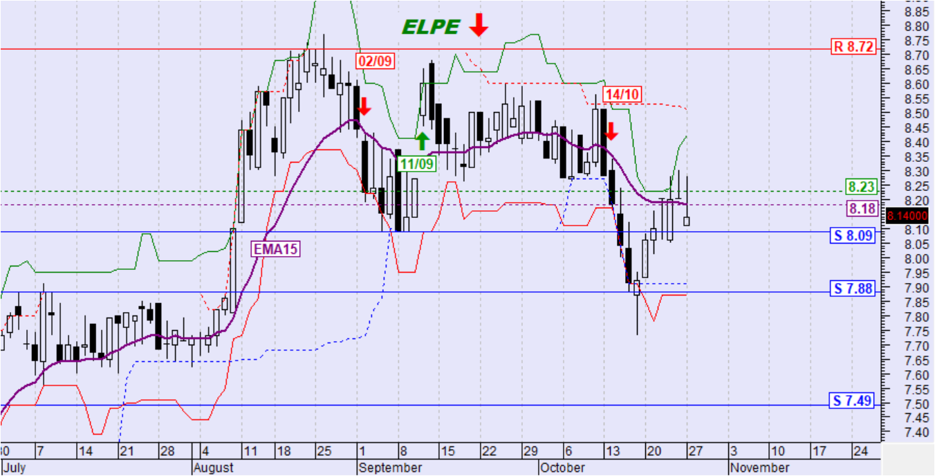 Ημερήσιο όριο αντιστροφής της βραχυπρόθεσμης τάσης σε ανοδική: 8,23€ (κλείσιμο)