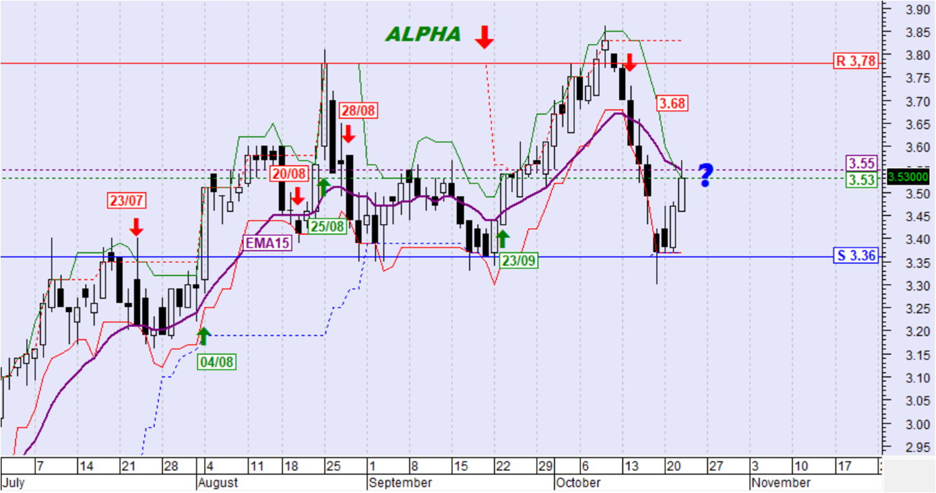 Ημερήσιο όριο αντιστροφής της βραχυπρόθεσμης τάσης σε ανοδική: 3,53€ (κλείσιμο)