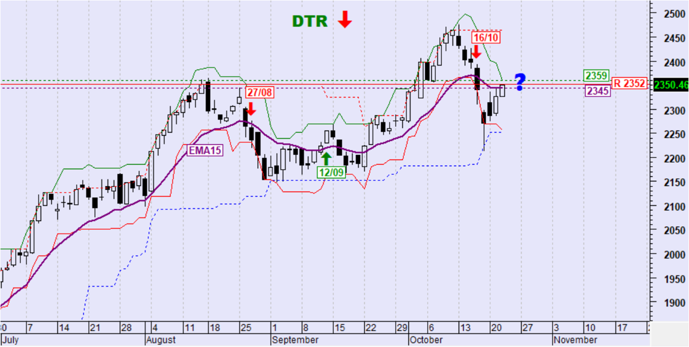 ο Εκθετικός Μέσος Όρος των 15 ημερών (ΕΜΑ15) στις 2345 μονάδες