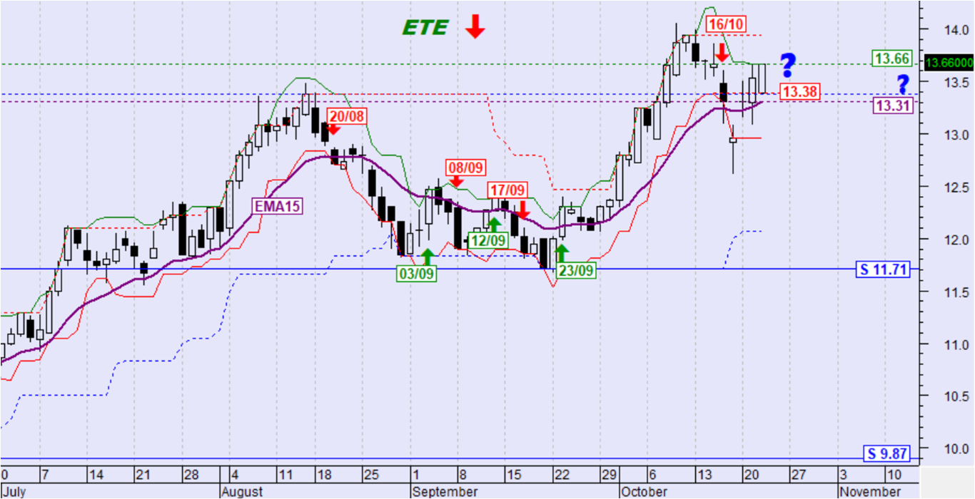 Ημερήσιο όριο αντιστροφής της βραχυπρόθεσμης τάσης σε ανοδική: 13,66€ (κλείσιμο)