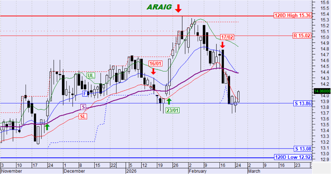 η μεσοπρόθεσμη στήριξη στα 13,86€