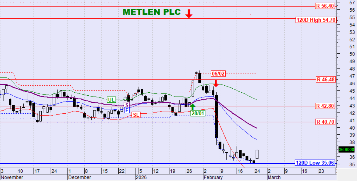 Η μετοχή κινήθηκε ανοδικά αλλά παραμένει χαμηλότερα των UL,F και S με αποτέλεσμα τη διατήρηση της καθοδικής τάσης.