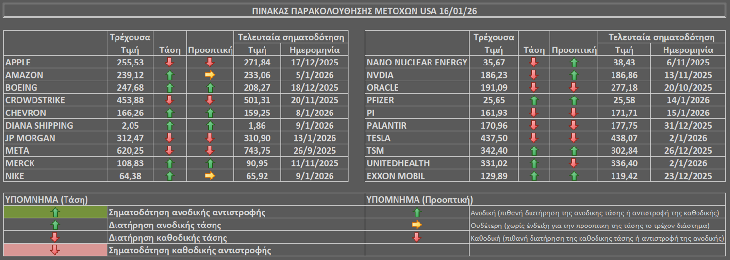 Τιμές με το κλείσιμο της 16/01/26