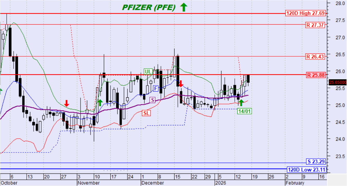 Η τιμή της μετοχής κινήθηκε ανοδικά αλλά παραμένει χαμηλότερα των UL,F και S με αποτέλεσμα τη διατήρηση της καθοδικής τάσης.