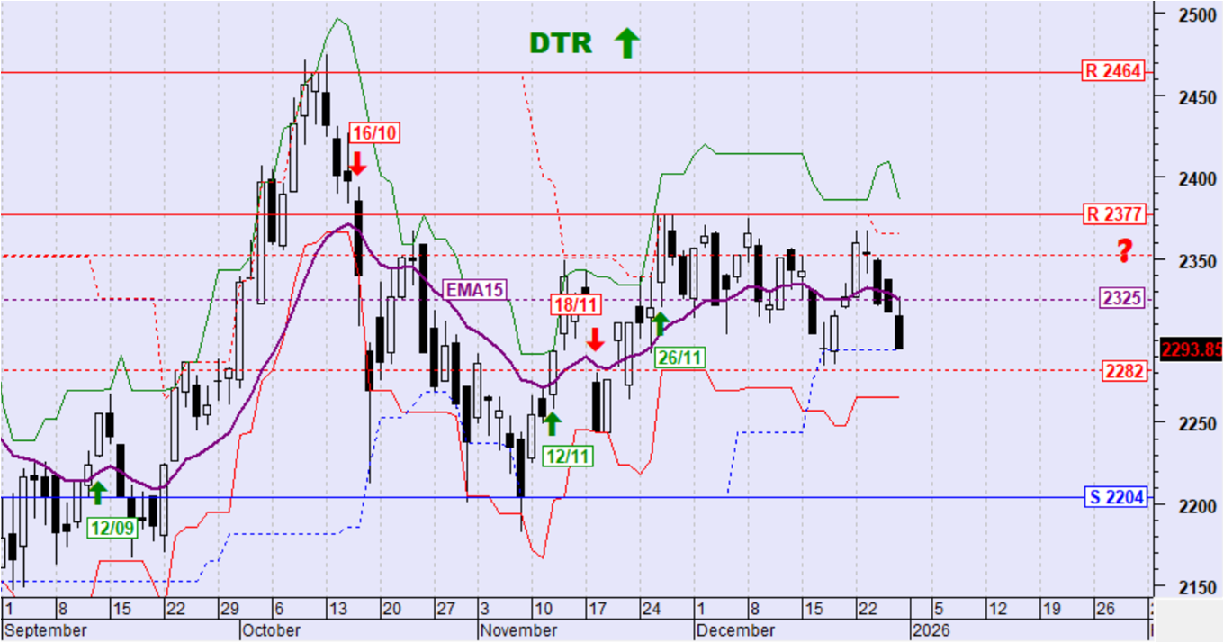 Ημερήσιο όριο αντιστροφής της βραχυπρόθεσμης τάσης σε καθοδική: 2282 μονάδες