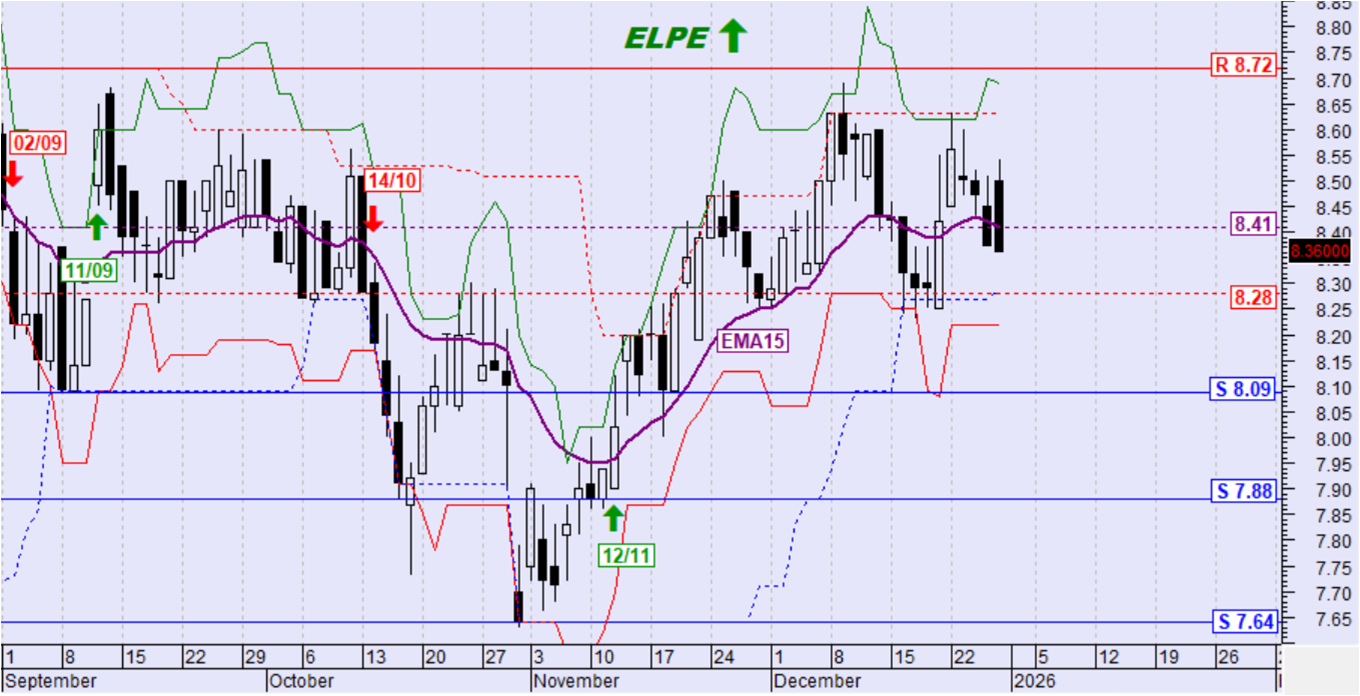 Ημερήσιο όριο αντιστροφής της βραχυπρόθεσμης τάσης σε καθοδική: 8.28€ (κλείσιμο)