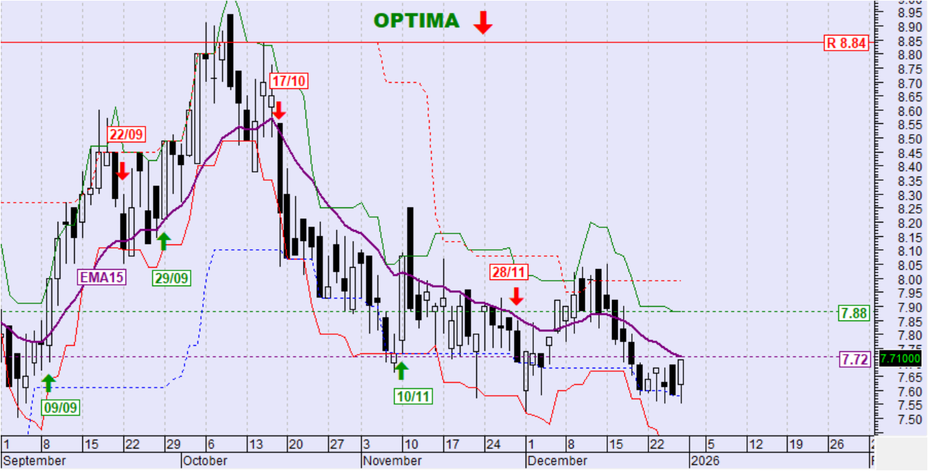 ο Εκθετικός Μέσος Όρος των 15 ημερών (ΕΜΑ15) στα 7,72€